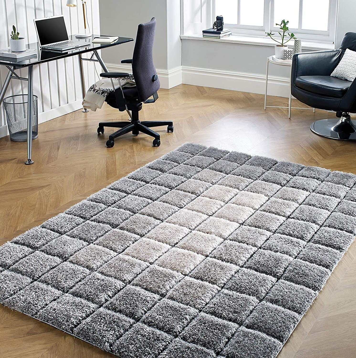 Velvet Shaggy Geometric Rugs Cube Living Bed Room Floor Carpet 120x170cm Grey