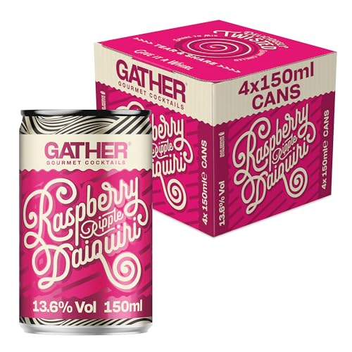 GATHER Raspberry Ripple Daiquiri | 4 x150ml Canned Cocktails | Fresh, tart Raspberries, Smooth Vanilla, White Rum | 13.6% ABV | Vegan and Allergen Free | Cocktail Pack