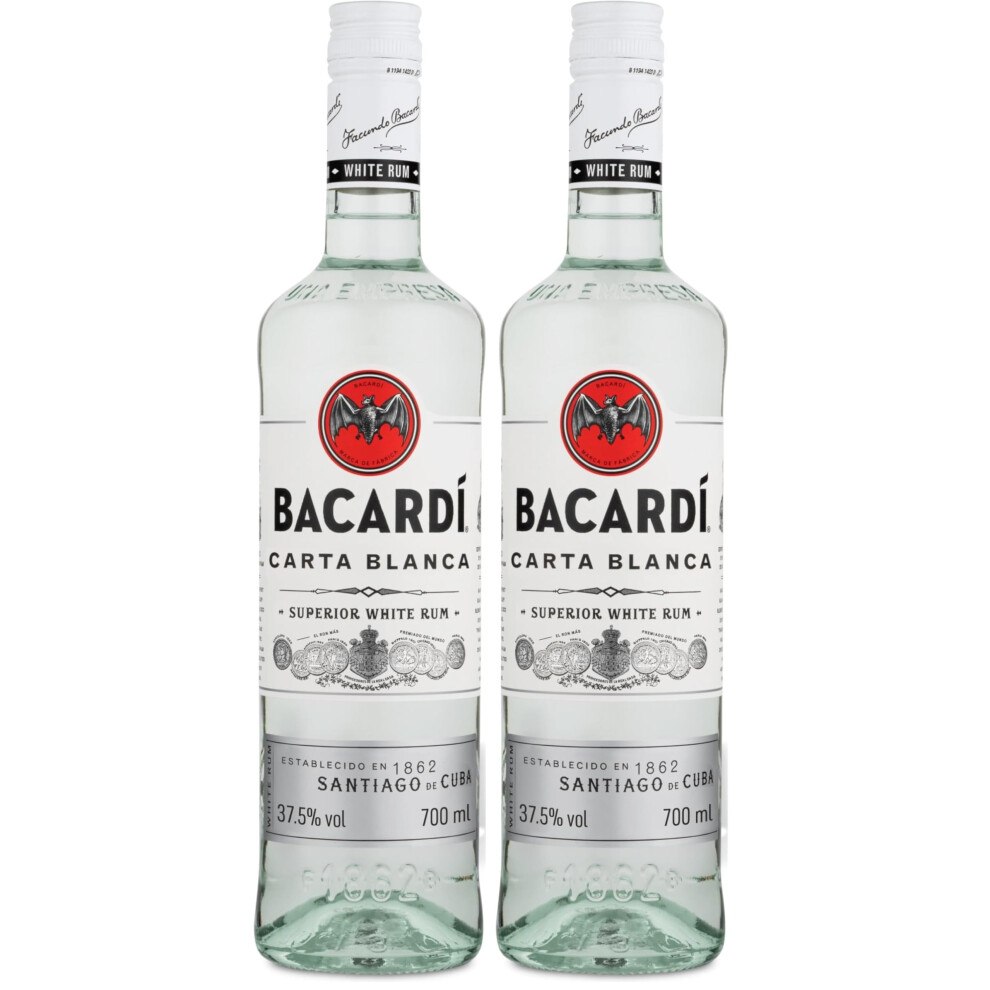 BACARDÍ Carta Blanca Superior White Rum, 37.5% ABV, 70cl / 700ml, Iconic Caribbean Rum Perfect for Cocktails (Pack of 2)