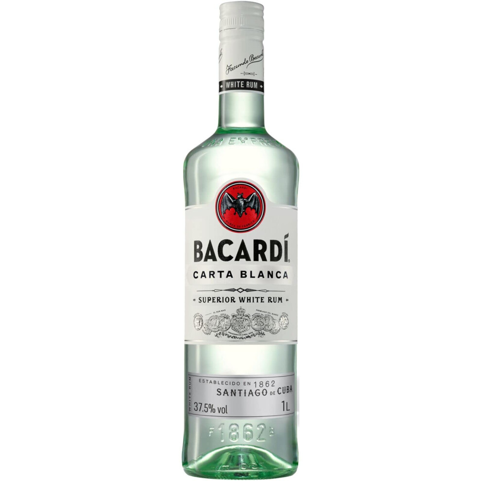 BACARDI Carta Blanca Superior White Rum - 1L / 100cl, 37.5% ABV - Iconic Caribbean Rum Perfect for Mixing and Cocktails