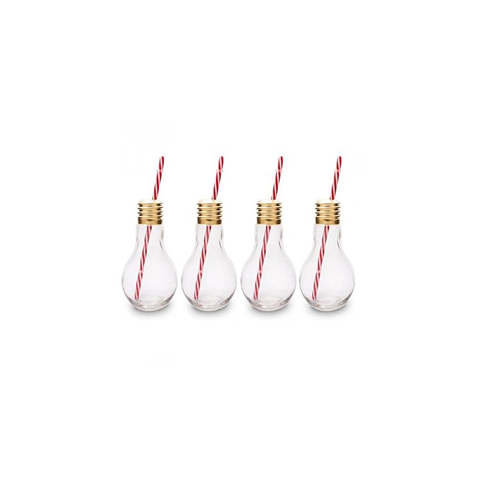 CKB LTD Pack of 4 Edison Light Bulb Novelty Drinking Glasses With Straw 400ml - Ideal for Soft Drinks, Beers, Cocktails & Rum Based Long Drinks