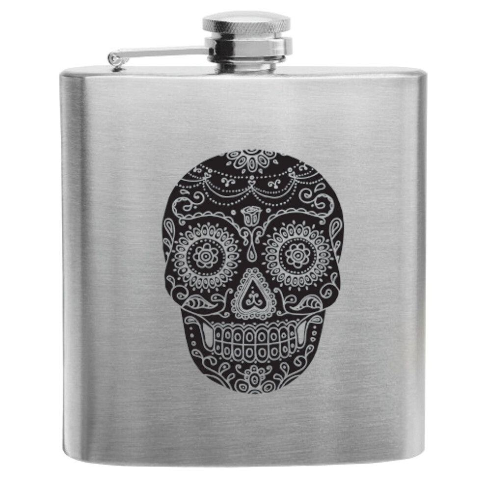 TRUE Dia De Los Muertos Stainless Steel Metal Men Drinking Flasks for Whiskey Tequila Rum Cocktails Travel Backpacking 6 oz Set of 1 Silver