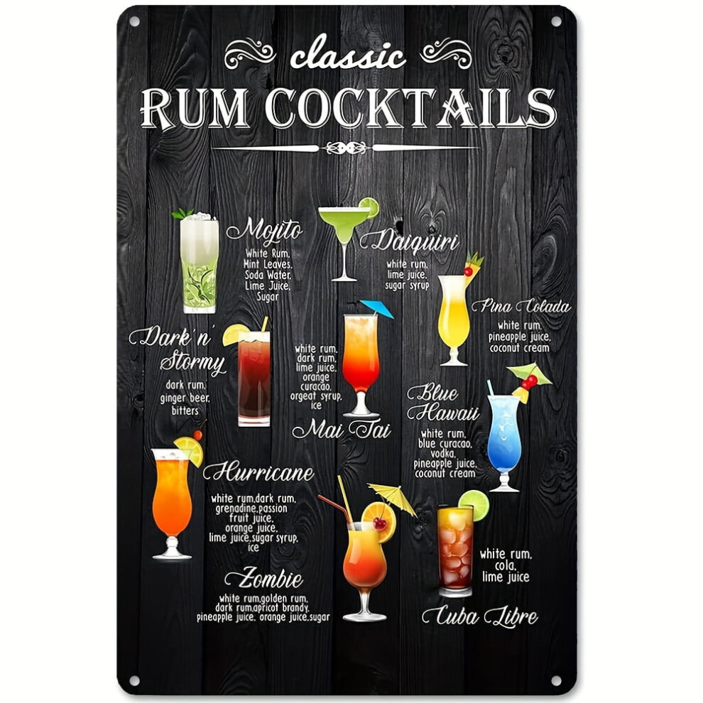 1pc, Funny Kitchen Bar Quote Metal Tin Sign Wall Decor, Rustic Classic Rum Cocktails Kitchen Bar Sign For Home Decor Gifts