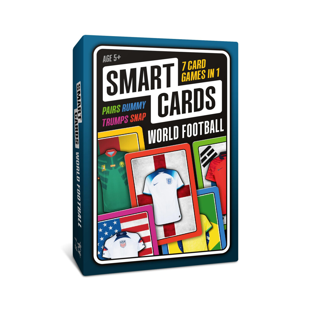 SMART CARDS World Football, 7 games in 1, a suitcase of games in your pocket, includes trumps, pairs, snap, rummy, cool stats and top trivia. Gift, Stocking Filler, Travel Game, age 5+, 1-8 players