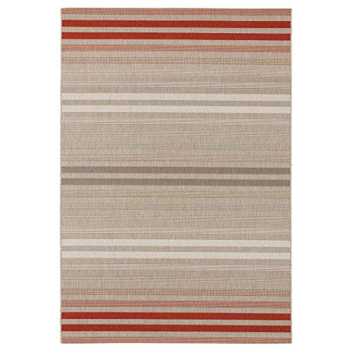 NORTHRUGS Indoor and Outdoor Paros 80 x 200 cm Weatherproof Modern Striped Design Line Pattern Patio Balcony Kitchen Runner Bathroom Living Room Rug Waterproof in Red Grey, Polypropylene (PP)