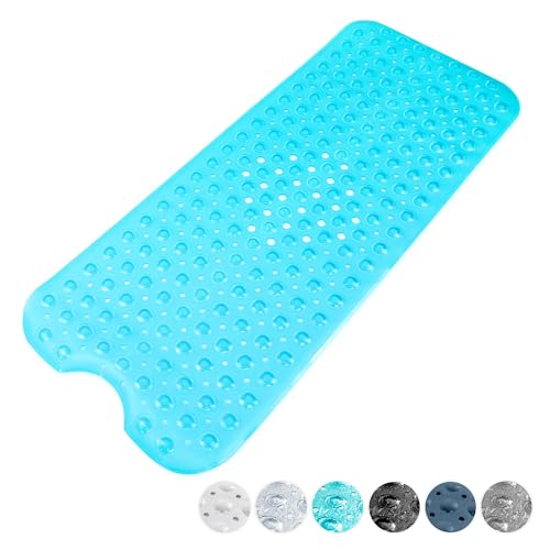 KEPLIN Premium Non-Slip Bath Mat - 200 Suction Cups, BPA, Latex Free, Mildew Resistant, Machine Washable - Safe, Durable & Comfortable for Shower Runner & Bathroom Tubs Extra Long (40x100cm) - Blue