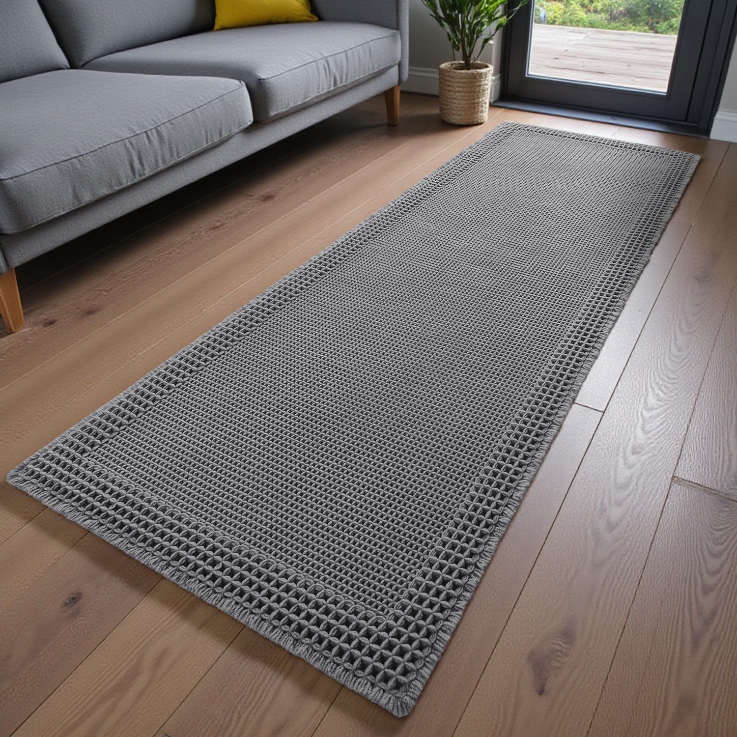 Hallway Carpet Runner Grey Woven Washable Runner Rugs Kitchen Bathroom 60x240cm