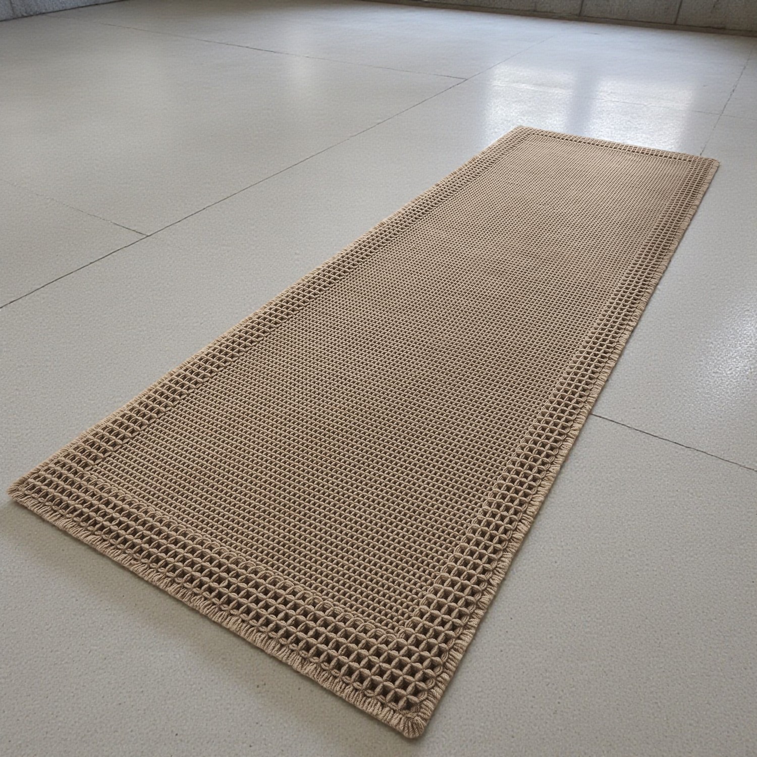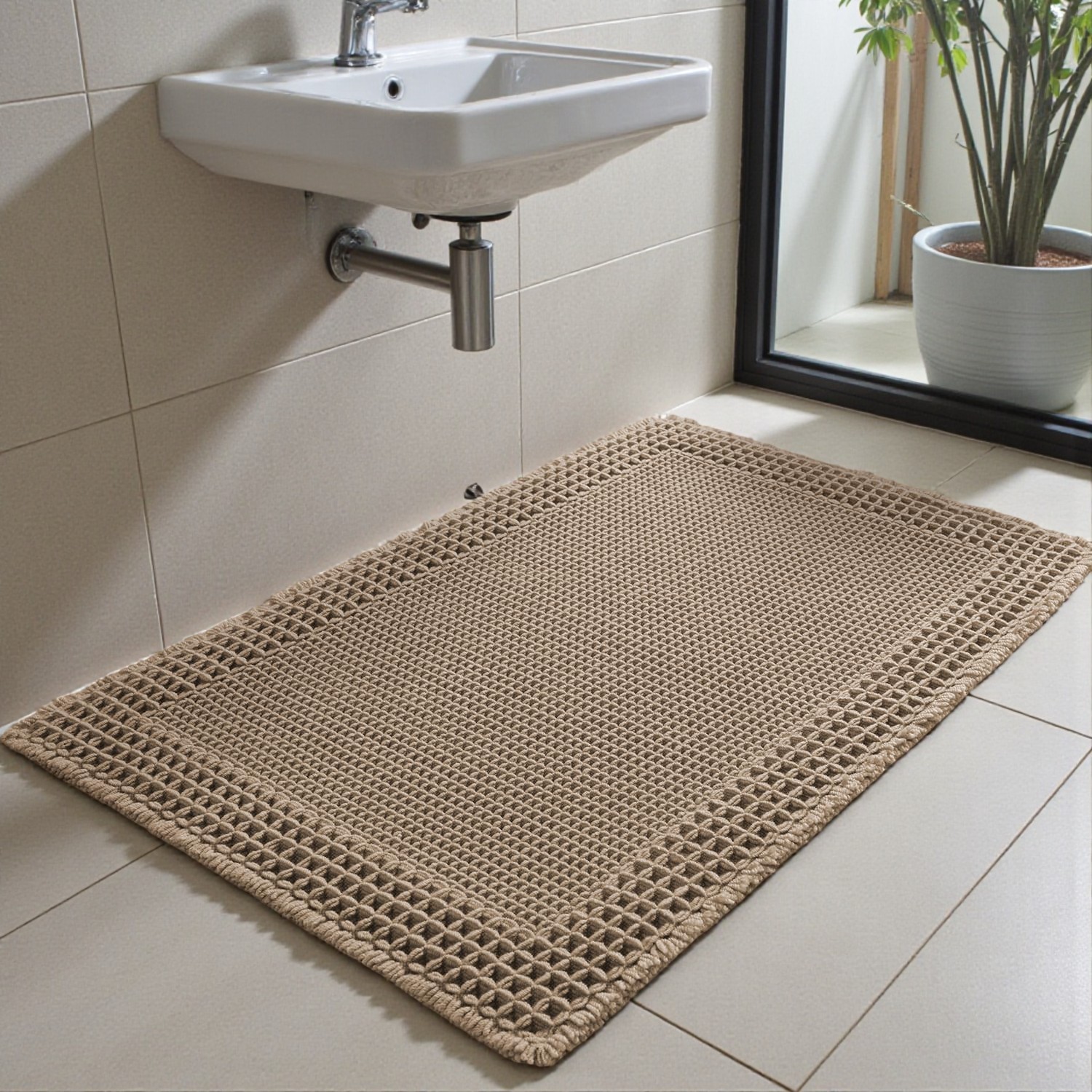 Waffle Bath Mat Beige Woven Washable Runner Rugs Kitchen Bathroom 60x40cm Home