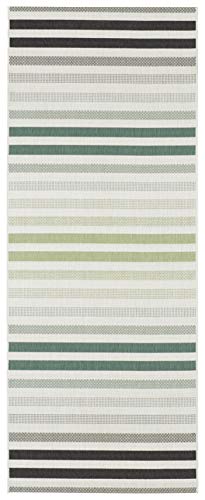 NORTHRUGS Indoor and Outdoor Paros 80 x 200 cm Weatherproof Modern Striped Design Line Pattern Patio Balcony Kitchen Runner Bathroom Living Room Rug Waterproof in Green Cream, Polyurethane (PU)