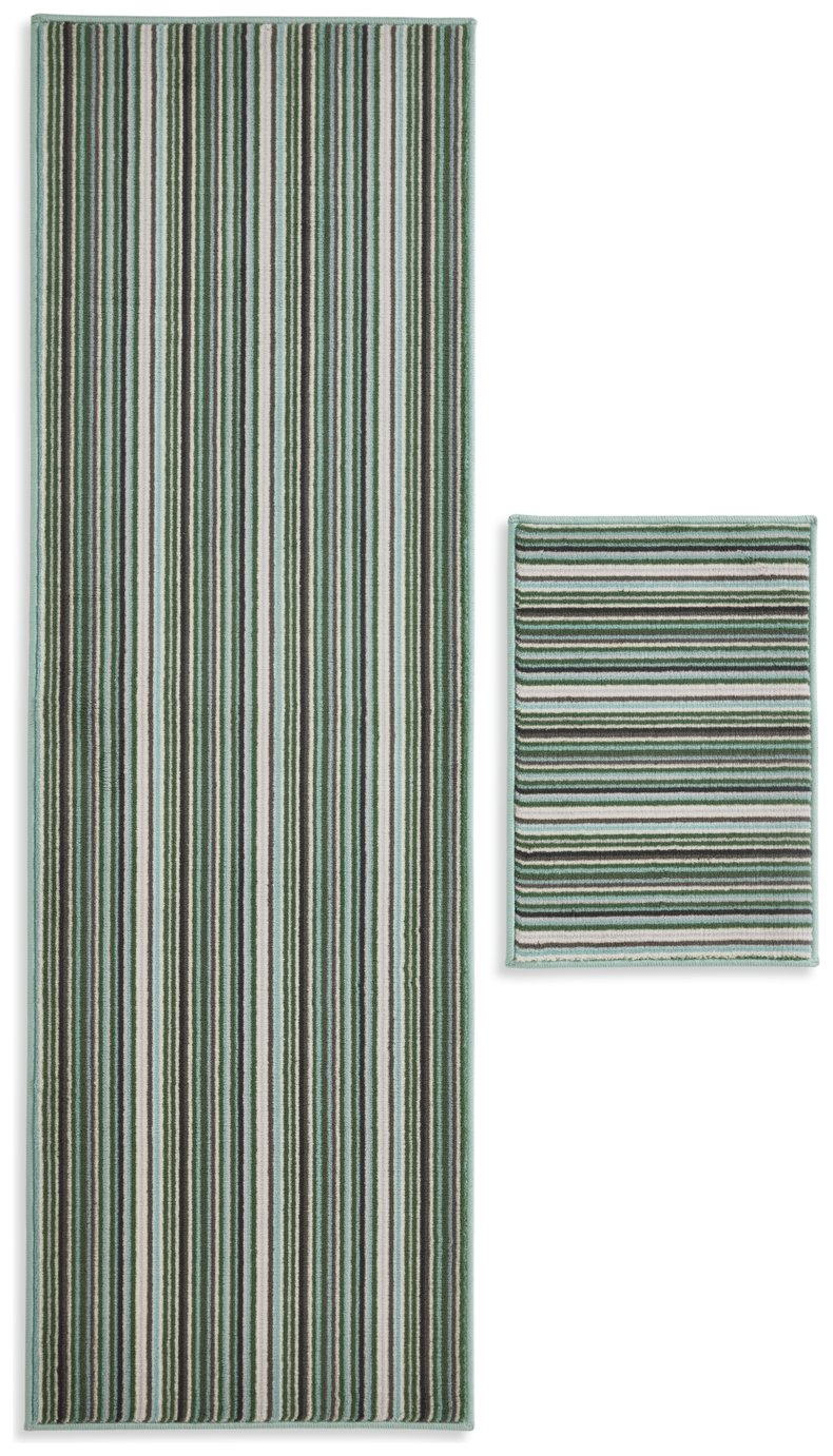 Habitat Skinny Stripe Green Runner & Mat Set - 180x57cm