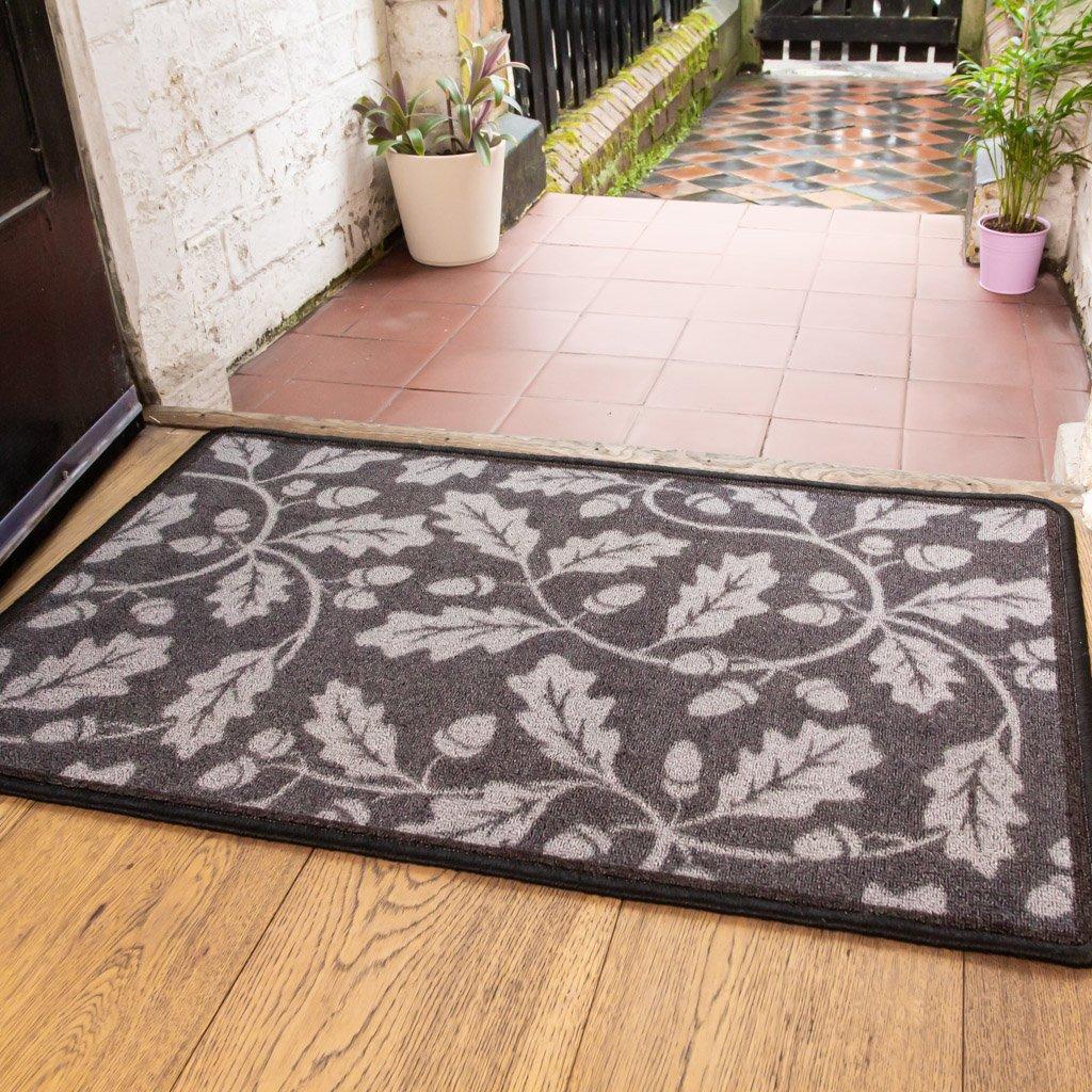 Grey Natural Leaf Acorn Non Slip Washable Utility Runner Mat