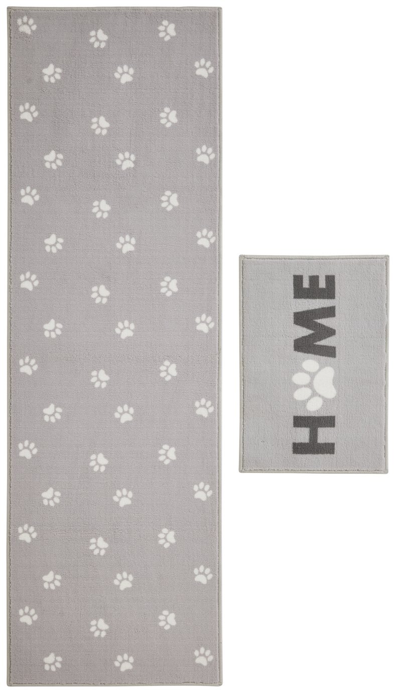 Argos Home Washable Paw Grey Runner & Mat Set - 180x57cm