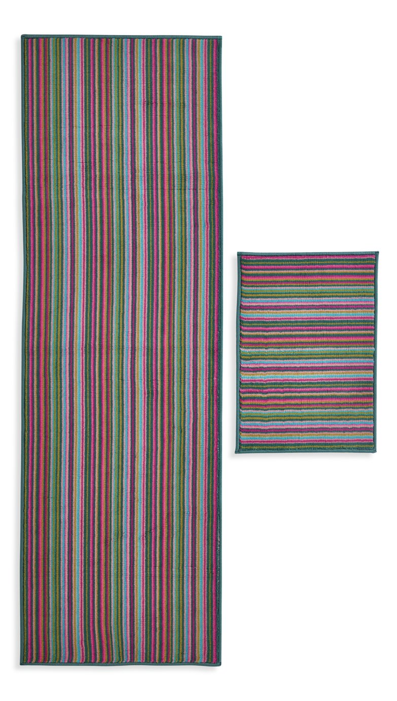 Habitat Washable Bright Stripe Runner & Mat Set - 180x57cm