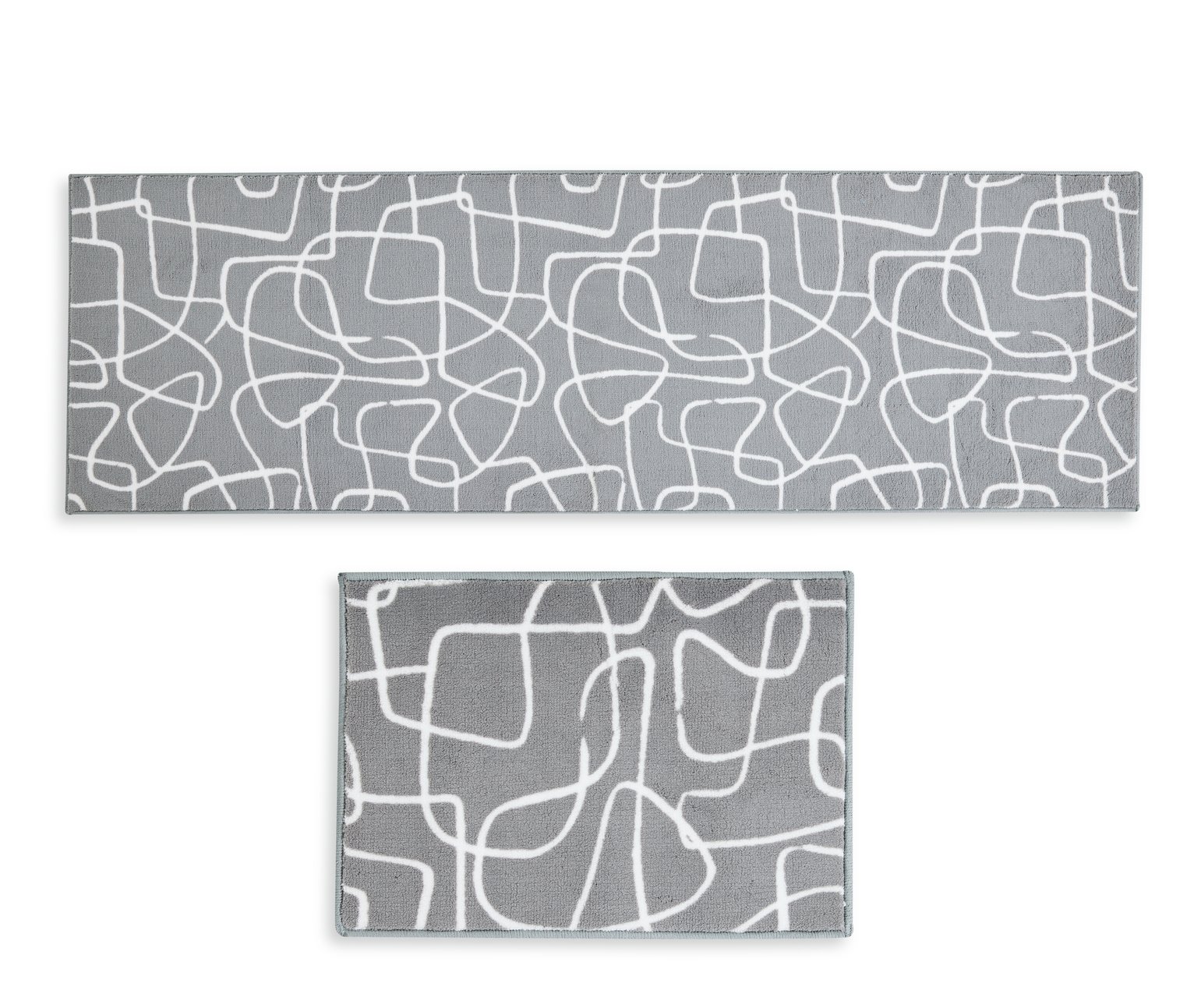 Habitat Scribble Washable Grey Runner & Mat Set - 180x57cm