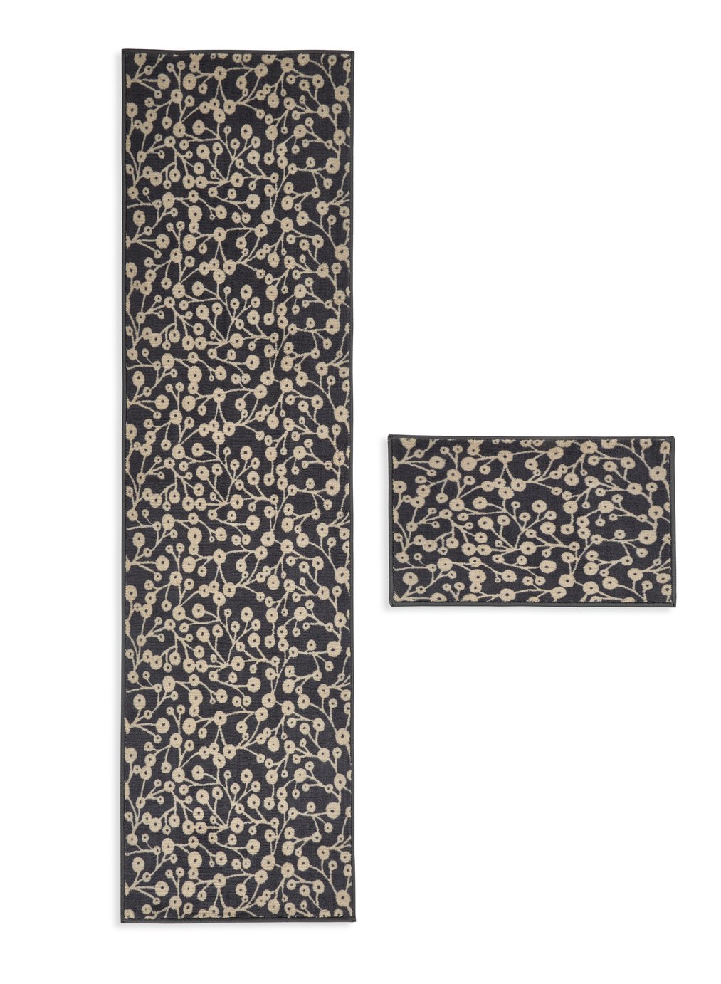 Habitat Washable Floral Black Runner & Mat Set - 180x57cm