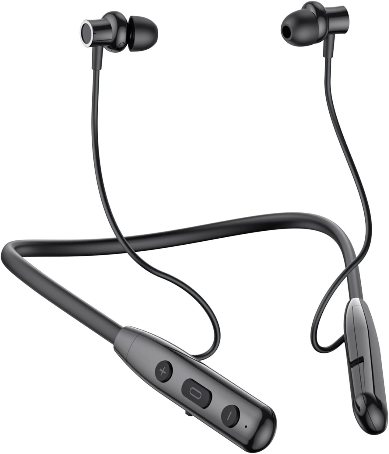 SOPPY Neckband Earphones Bluetooth 5.3 Wireless In-Ear Headphones with Mic, IPX6 Sport Earbuds Wireless for Running, Magnetic Headset Lightweight Earphones with 120 Hours Playtime - Black