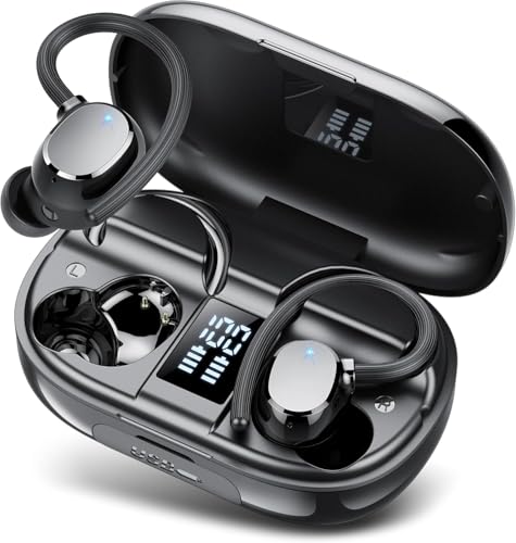 Wireless Earbuds, Bluetooth 5.4 Headphones Sport with Deep Bass Stereo, 60H Wireless Earphones with Earhooks 4 ENC Noise Cancelling Mic, Bluetooth Earbuds IP7 Waterproof, LED Display for Running/Gym
