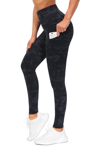 OVRUNS High Waist Gym Leggings for Women Yoga Pants with Pockets Workout Running Compression Leggings for Women - Deep Coal Camo Multi - M