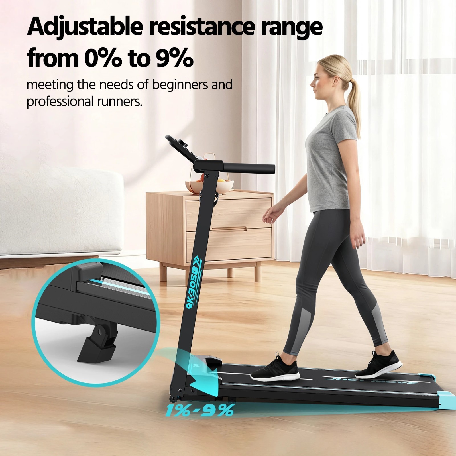Folding Treadmill Running Machine Incline 9% 4 in 1 Walking Pad Bluetooth 14km/h