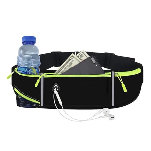 Tyuodna Running Belt with Water Bottle Holder,Ultra Light and Waterproof Waist Pack, with Reflective Strips and Headphone Hole Ideal Adjustable for Exercise, Travel Hiking & Outdoor Activities (Green)