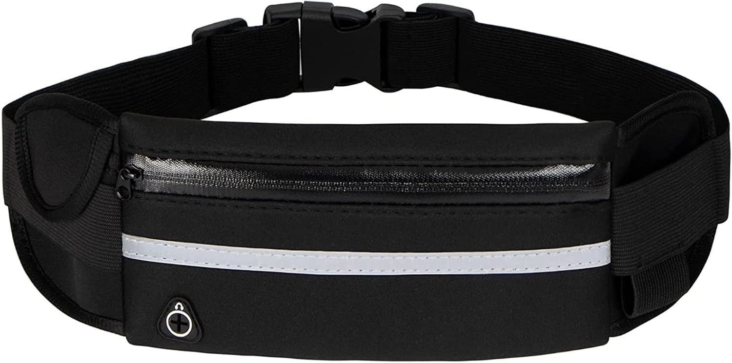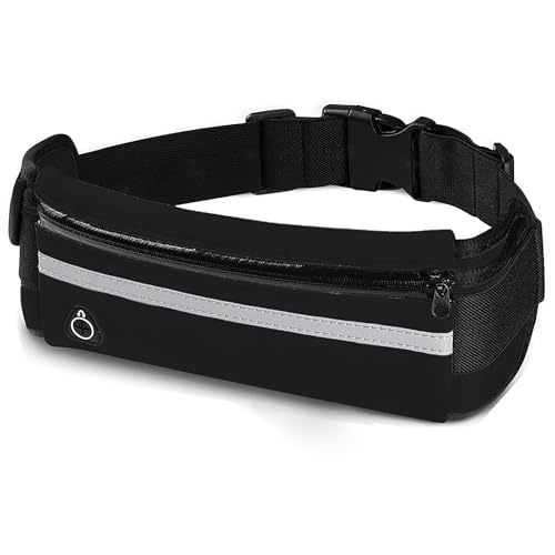 Running Belt with,Sweatproof waistpacks with,Running Belt Waist Pack with,Adjustable with Reflective Strips,with Headphone Jack,Perfect for Running and Outdoor Activities(Black)