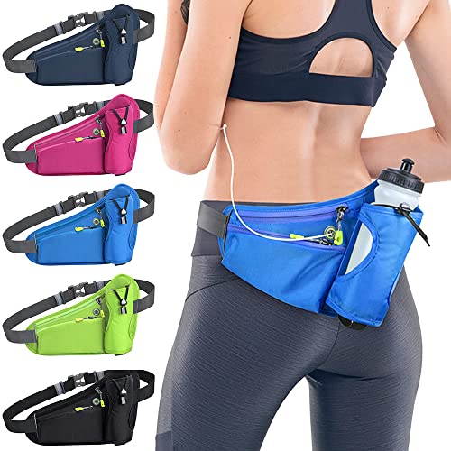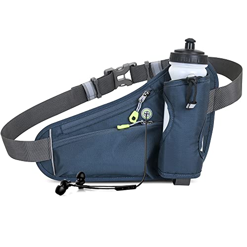 Tyuodna Running Belt with Water Bottle Holder,Ultra Light and Waterproof Waist Pack, with Reflective Strips and Headphone Hole Ideal Adjustable for Exercise, Travel Hiking & Outdoor Activities (Blue)