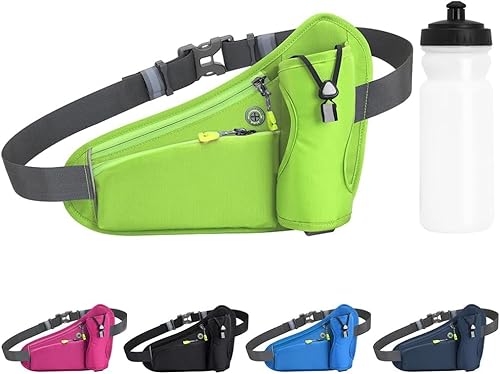 Tyuodna Running Belt with Water Bottle Holder,Ultra Light and Waterproof Waist Pack, with Reflective Strips and Headphone Hole Ideal Adjustable for Exercise, Travel Hiking & Outdoor (Green+Bottle)