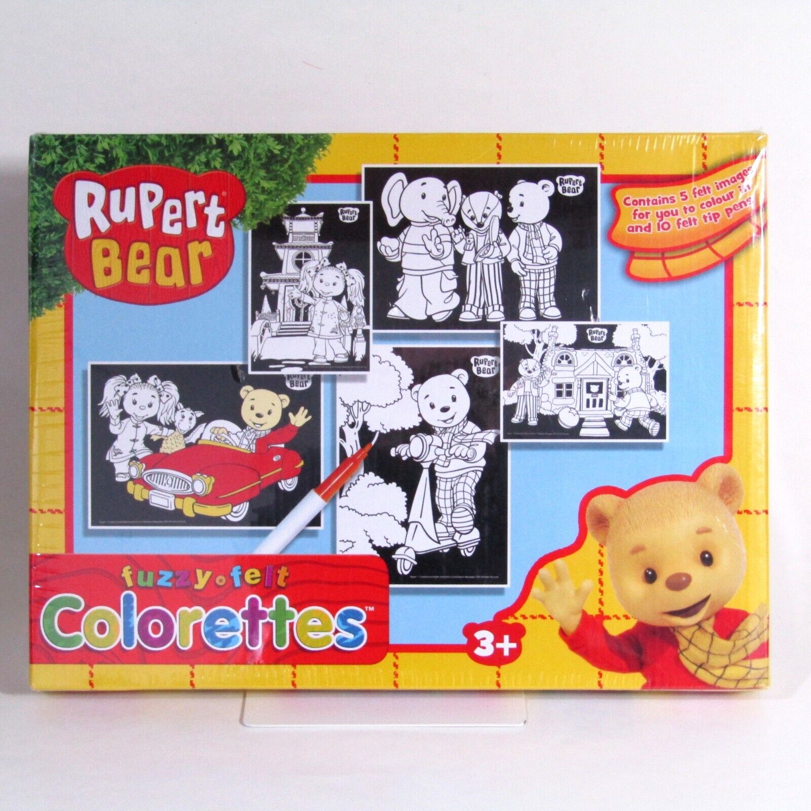 Rupert Bear Fuzzy Felt Colorettes. 5 Felt Images & Felt Tip Pens. Factory Sealed