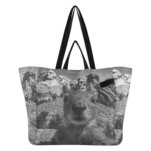 Mount Rushmore Squirrel Large Canvas Tote Recycle Kitchen Grocery Bags Crafts Bag for Women Bridesmaid Presents bolsos para ninas