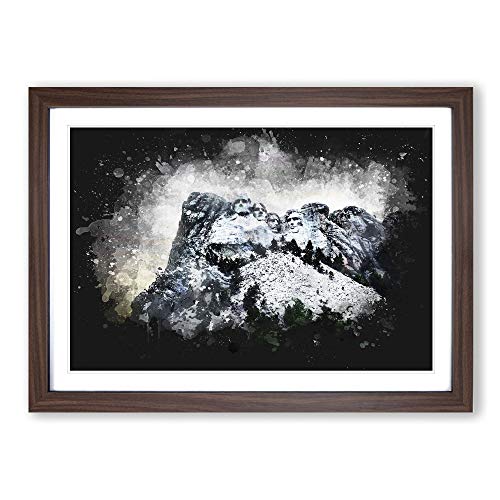 Big Box Art Mount Rushmore Memorial Paint Splash Framed Wall Art Picture Print Ready to Hang, Walnut A2 (62 x 45 cm)
