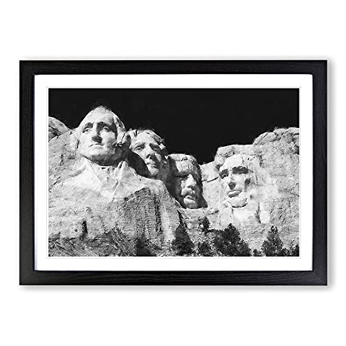 Big Box Art Mount Rushmore Memorial Painting Framed Wall Art Picture Print Ready to Hang, Black A2 (62 x 45 cm)