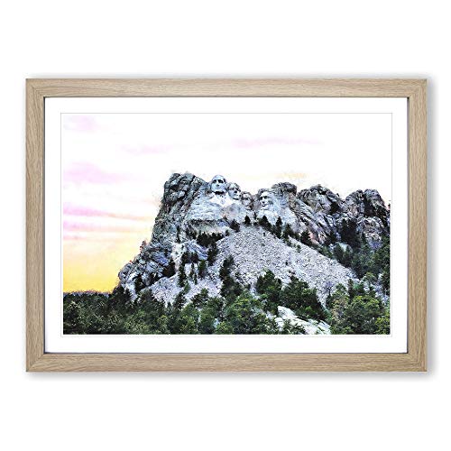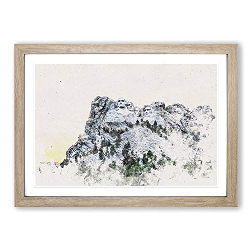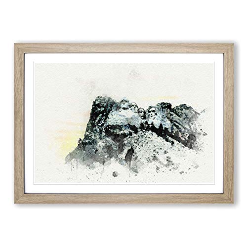 Big Box Art Mount Rushmore Memorial Watercolour Framed Wall Art Picture Print Ready to Hang, Oak A2 (62 x 45 cm)
