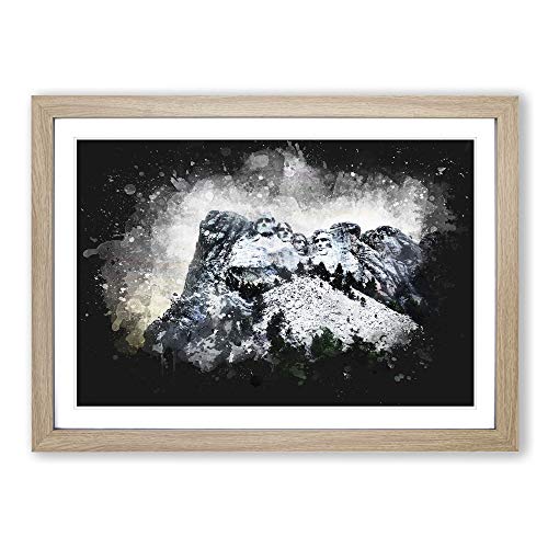 Big Box Art Mount Rushmore Memorial Paint Splash Framed Wall Art Picture Print Ready to Hang, Oak A2 (62 x 45 cm)