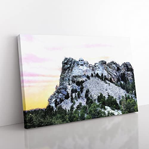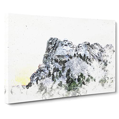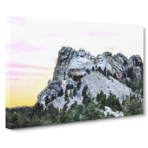 Mount Rushmore Memorial Watercolour Canvas Print for Living Room Bedroom Home Office Décor, Wall Art Picture Ready to Hang, 30 x 20 Inch (76 x 50 cm)
