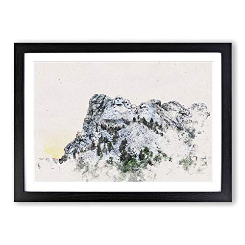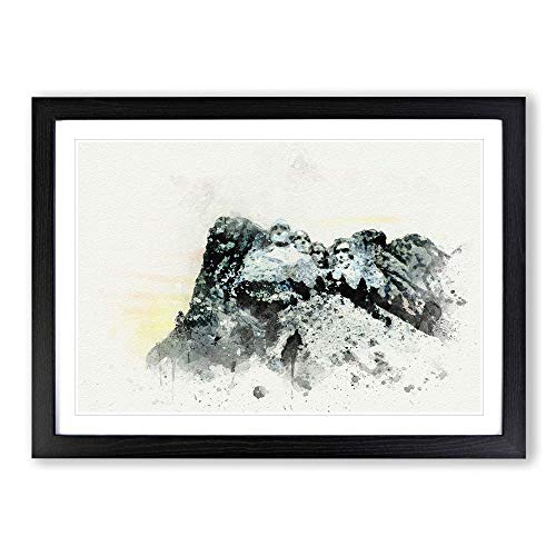 Big Box Art Mount Rushmore Memorial Watercolour Framed Wall Art Picture Print Ready to Hang, Black A2 (62 x 45 cm)