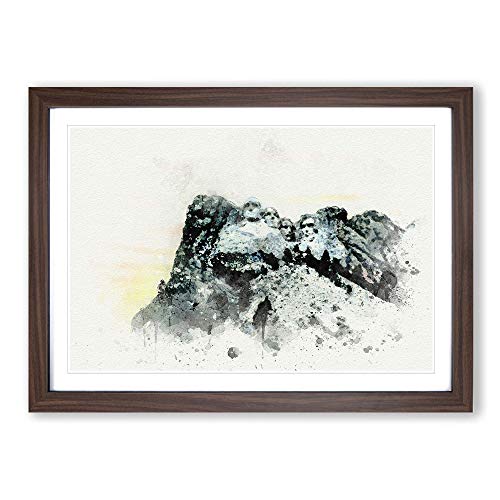 Big Box Art Mount Rushmore Memorial Watercolour Framed Wall Art Picture Print Ready to Hang, Walnut A2 (62 x 45 cm)