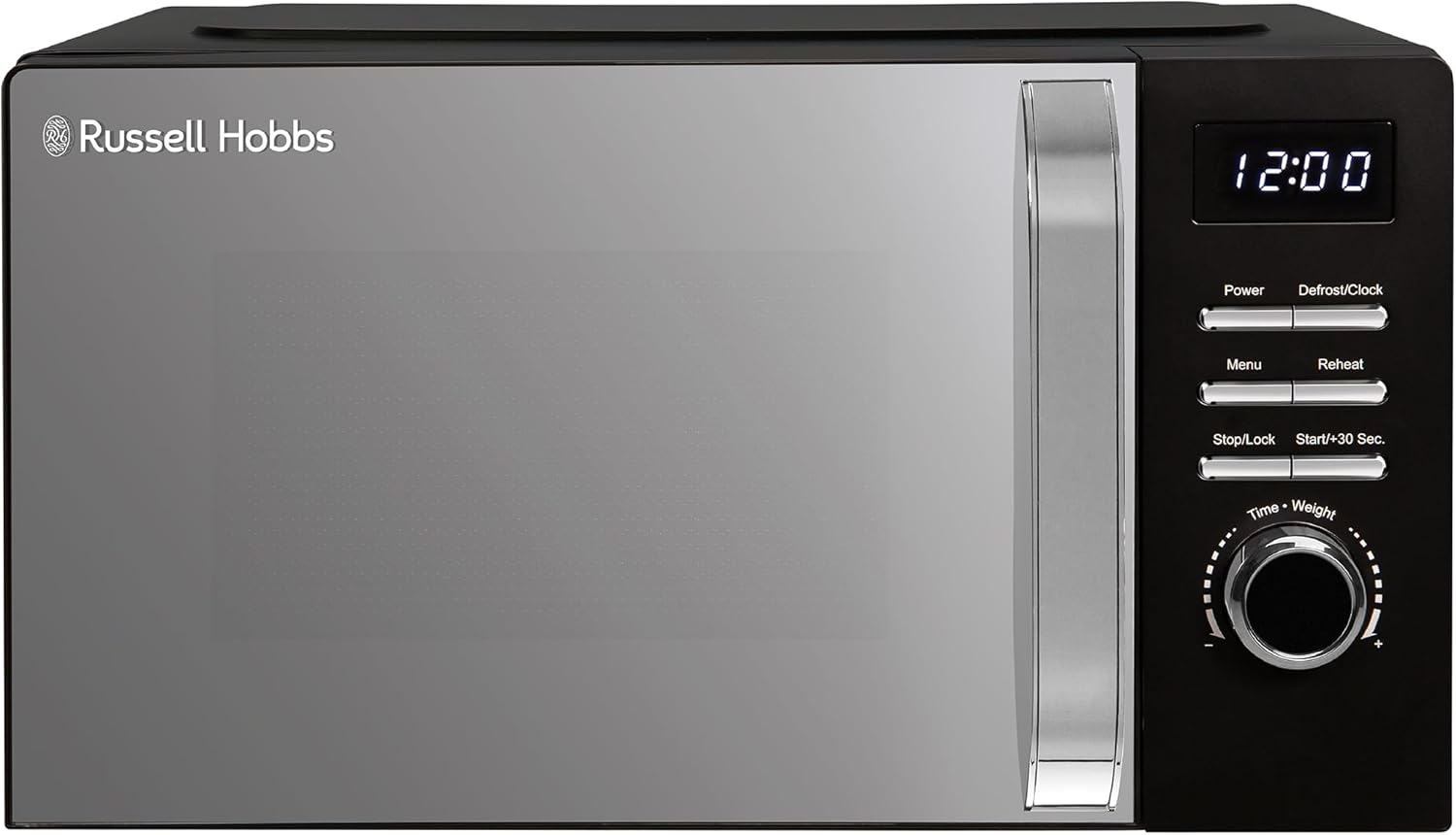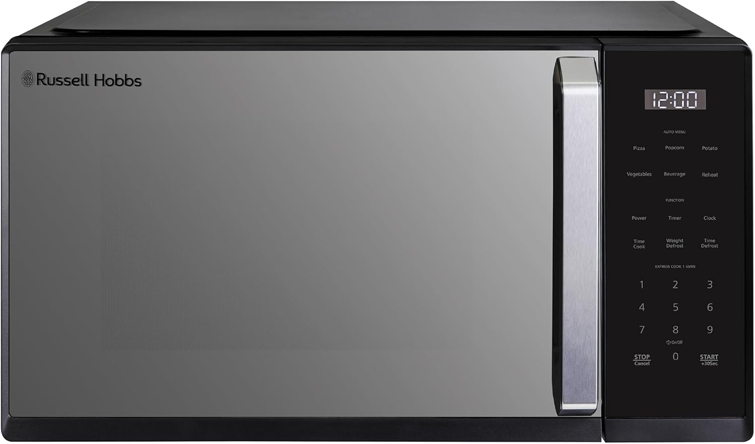 Russell Hobbs Digital Microwave 23 Litre 900W Stainless Steel with 8 Auto Cook Menus & Defrost Function, 5 Power Levels, Integrated Timer, Mirror Door