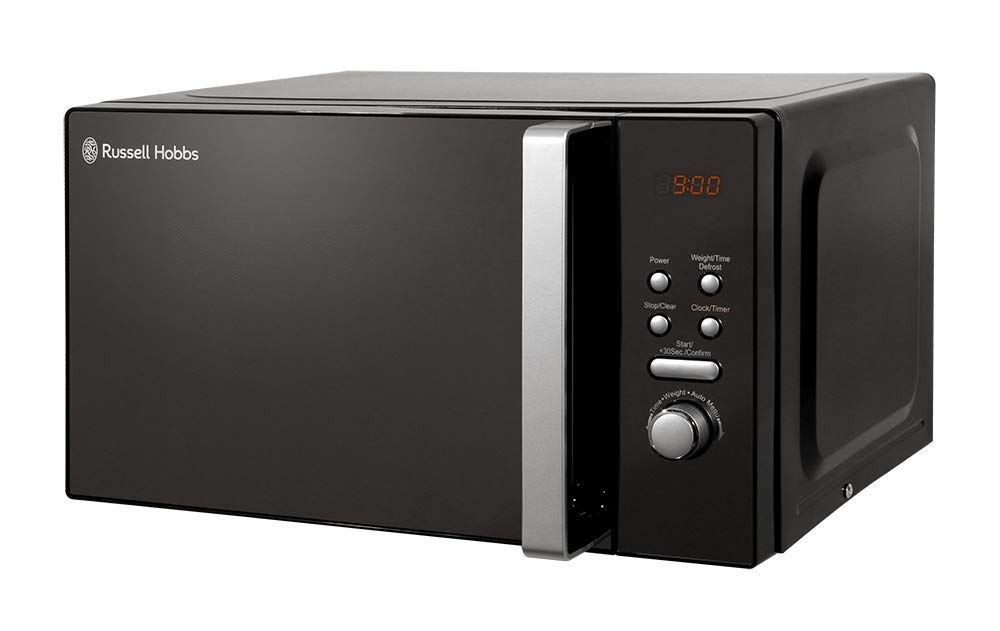 Russell Hobbs Black Digital Microwave 20 Litre 800W Solo Digital with 5 Power Levels, Defrost Function & Easy Clean, 60 Minute Timer, 8 Auto-Cook