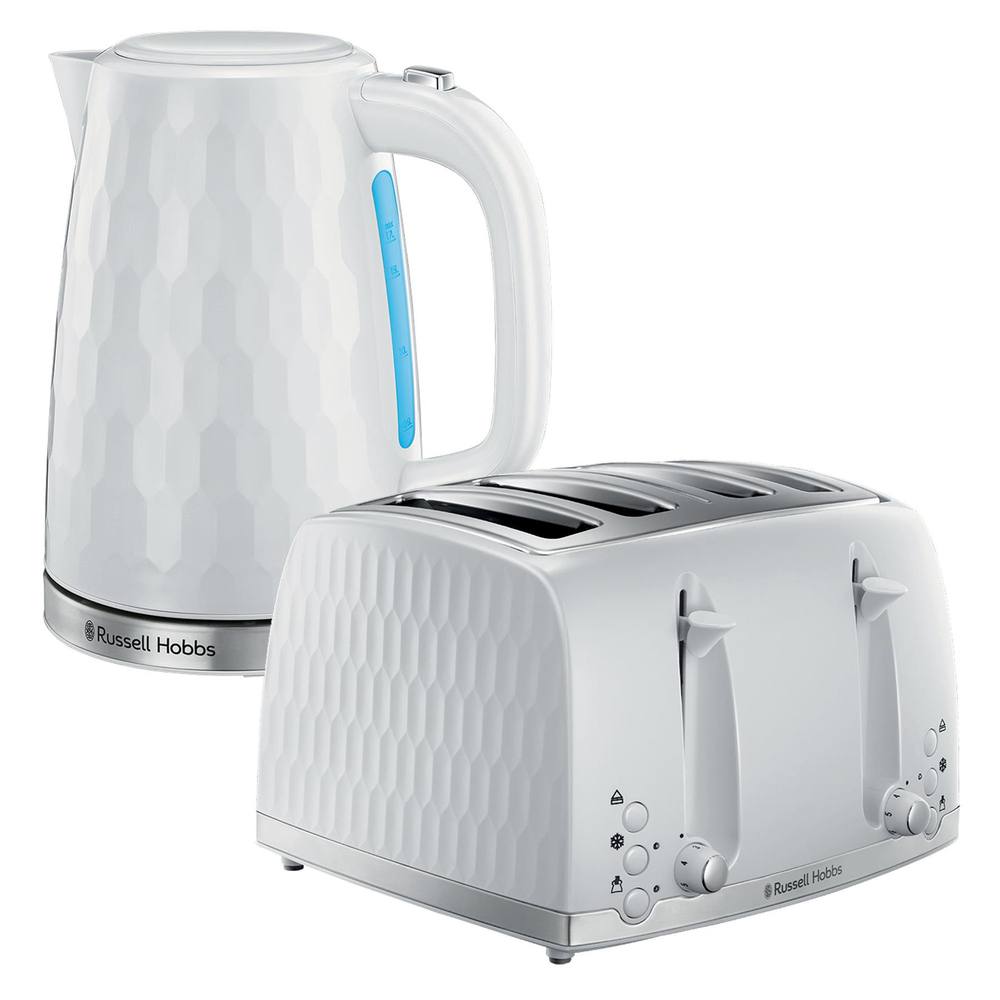 Russell Hobbs 4 Slice Toaster & Kettle Set, Honeycomb in White