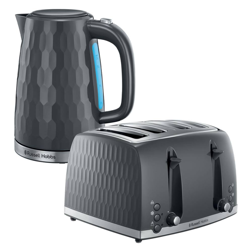 Russell Hobbs 4 Slice Toaster & Kettle Set, Honeycomb in Grey
