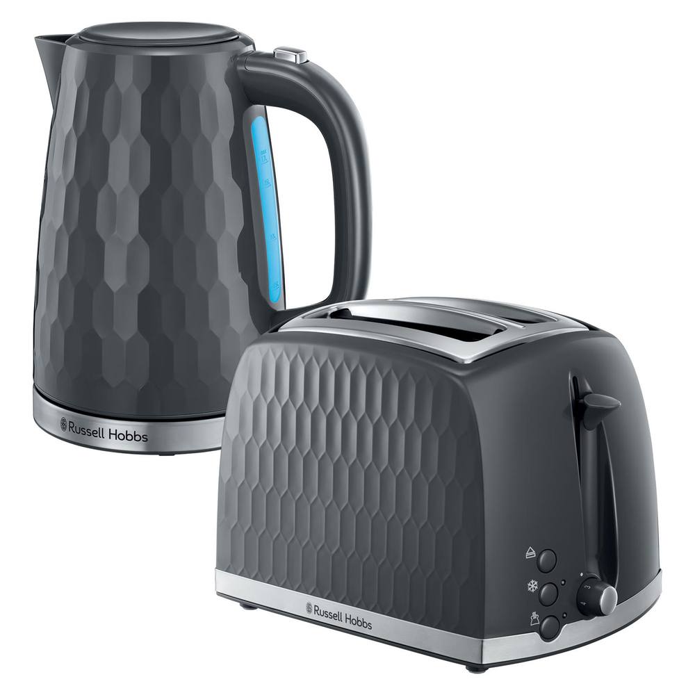 Russell Hobbs Honeycomb Kettle and 2 Slice Toaster,Rapid Boil, Grey