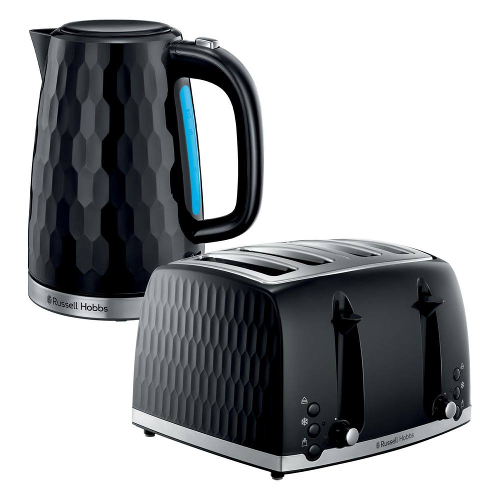 Russell Hobbs 4 Slice Toaster & Kettle Set, Honeycomb in Black