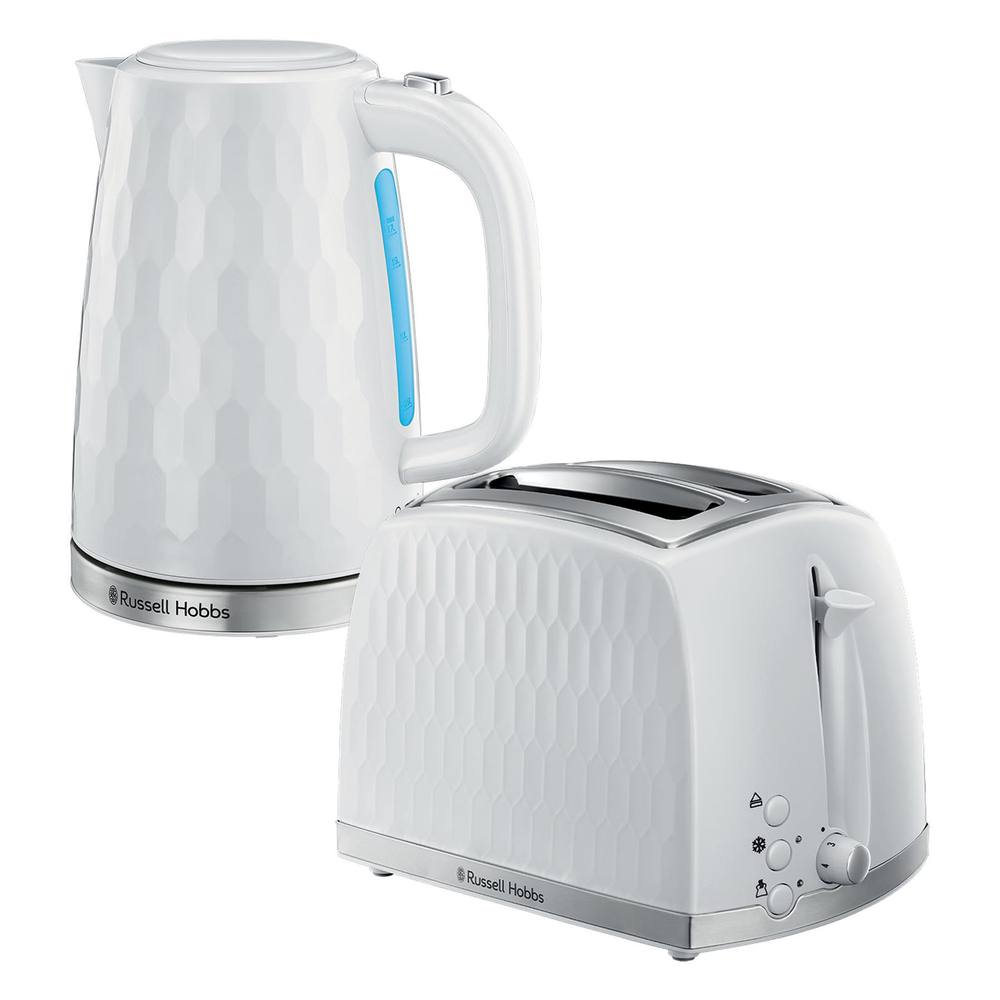 Russell Hobbs Honeycomb Kettle and 2 Slice Toaster, White