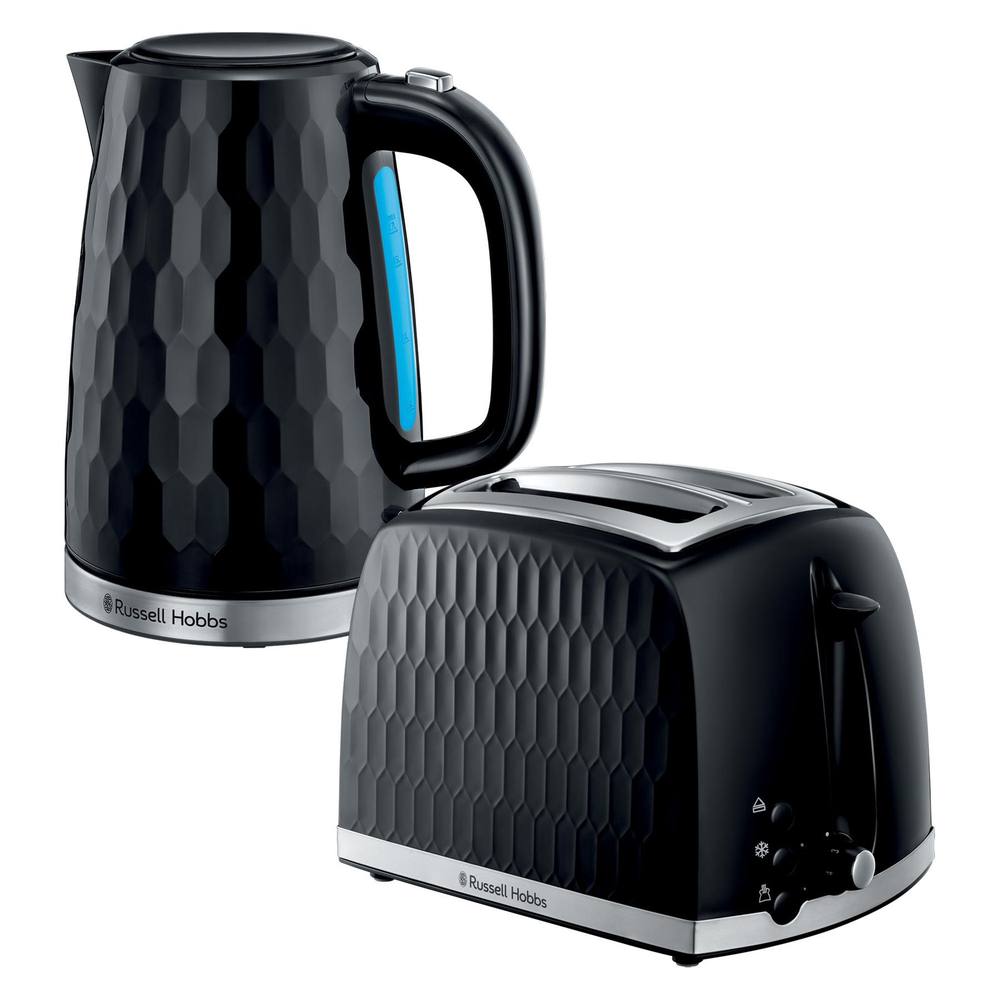 Russell Hobbs 2 Slice Toaster & Kettle Set, Honeycomb in Black