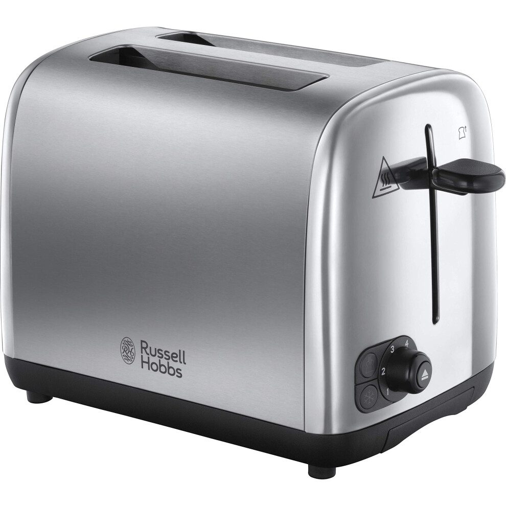 Russell Hobbs 2 Slice Toaster (Stainless steel with matte textured finish, Extra Wide Slots, Lift & Look feature, Variable browning levels, Cancel,