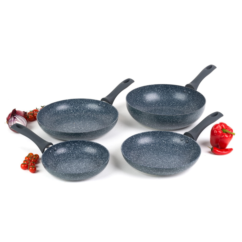 Russell Hobbs COMBO-5390 Nightfall Stone 4-Piece Pan Set, Non-Stick Frying Pan and Stir Fry Pan Set, 20/24/28 cm Pressed Aluminium Cookware, Induction