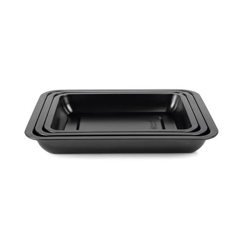 Russell Hobbs Everyday 3-Piece Roaster Set – Stackable Roasting Trays, Non-Stick ILAG Coating, Carbon Steel, Made in The UK, Dishwasher Safe, 5 Year Guarantee, Meat, Vegetables, Sunday Roasts, Black