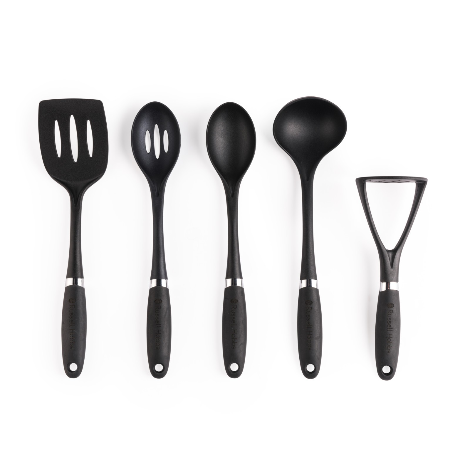 Russell Hobbs Utensil Set 5-Piece Hanging Hook Soft Touch Easy Clean Venus Black