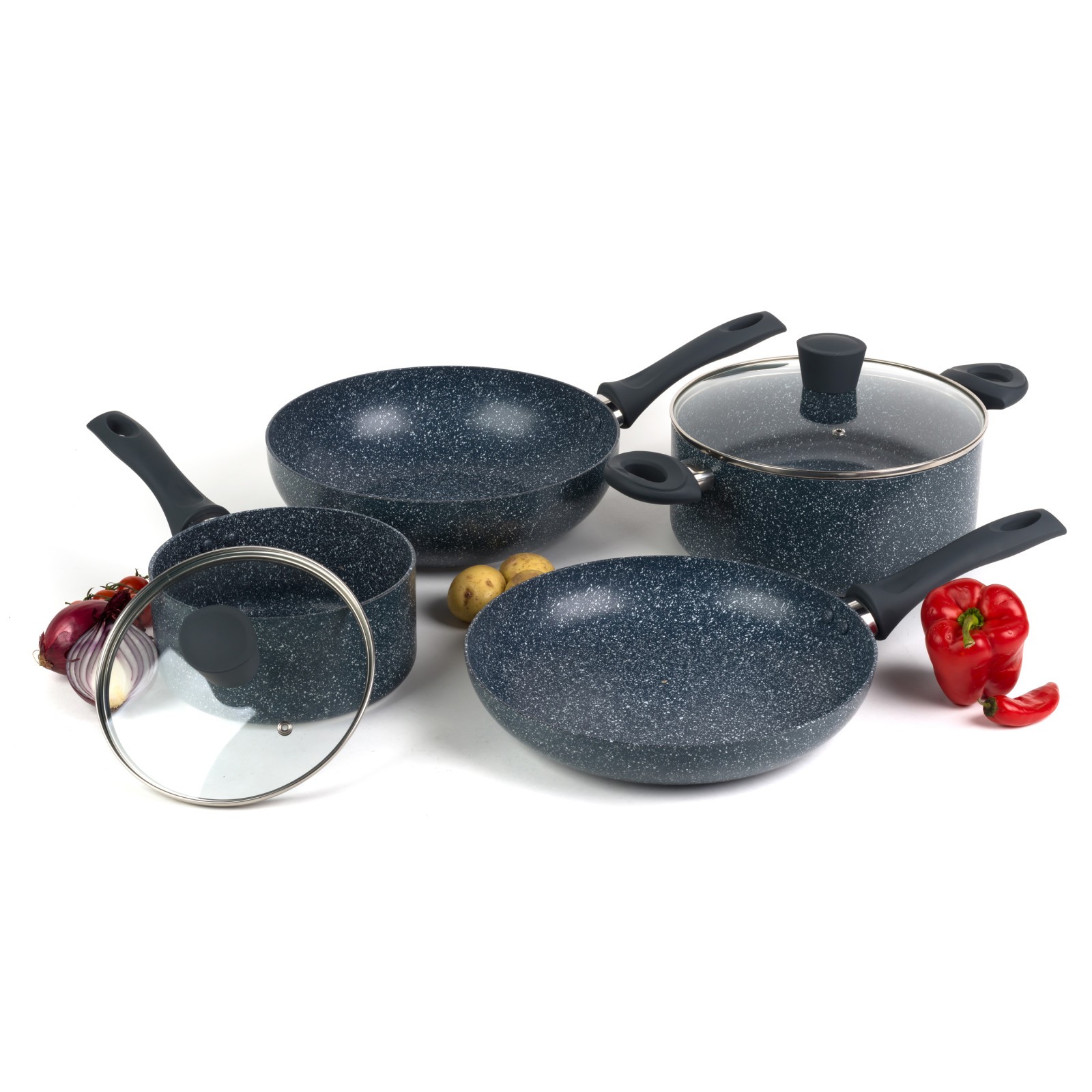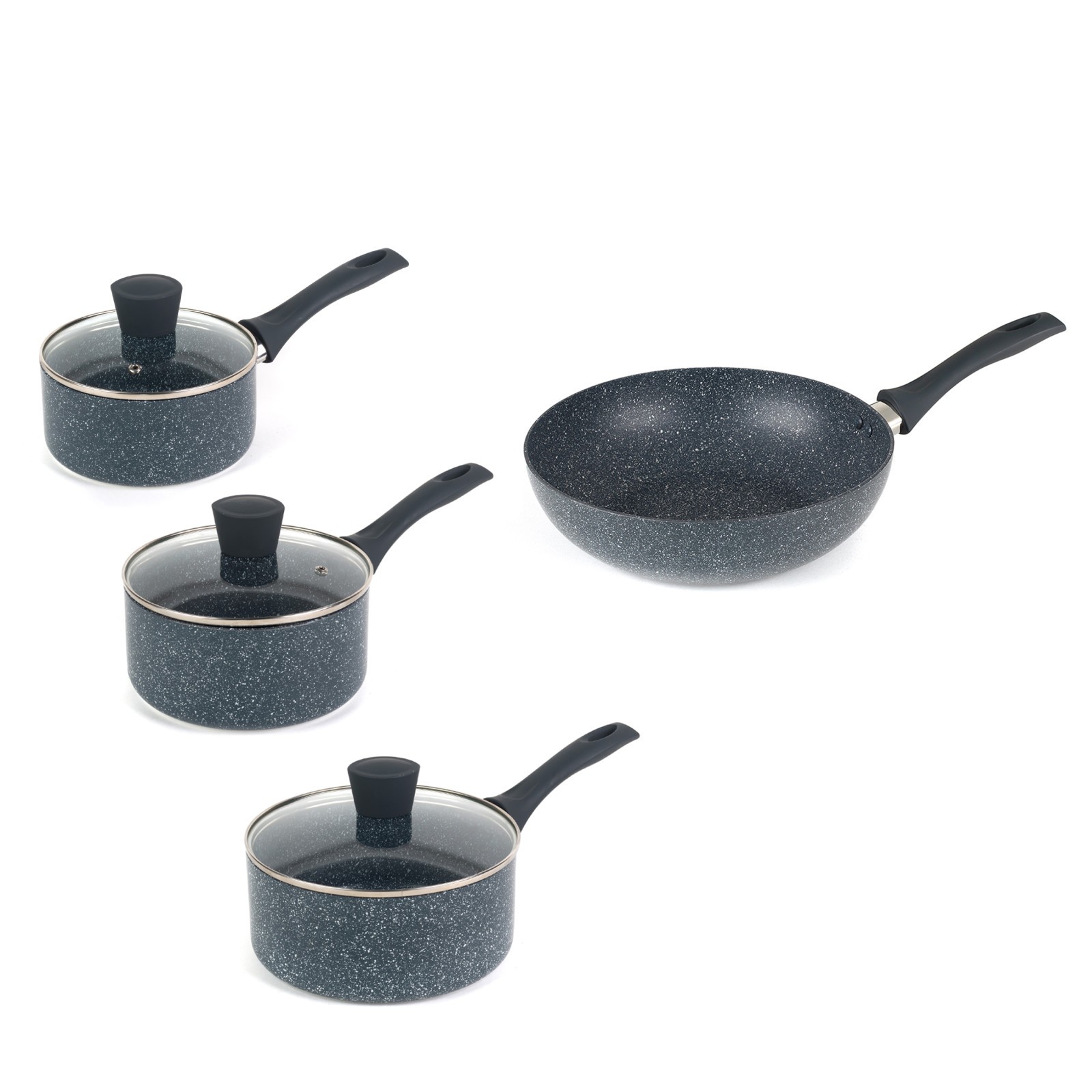 Russell Hobbs Pan Set 4 Piece Saucepans & Stir Fry Pan Non-Stick Blue Marble
