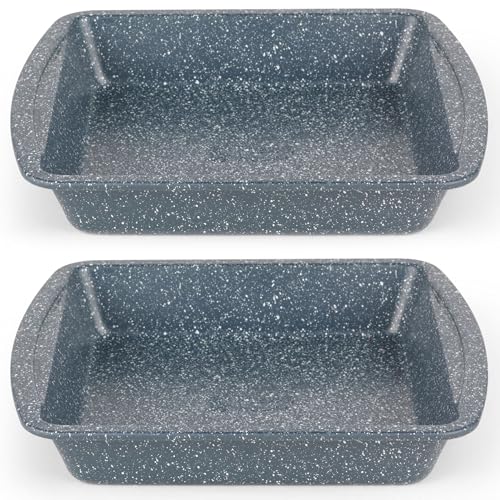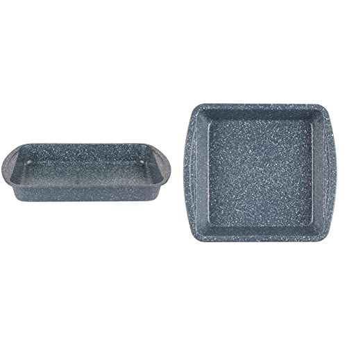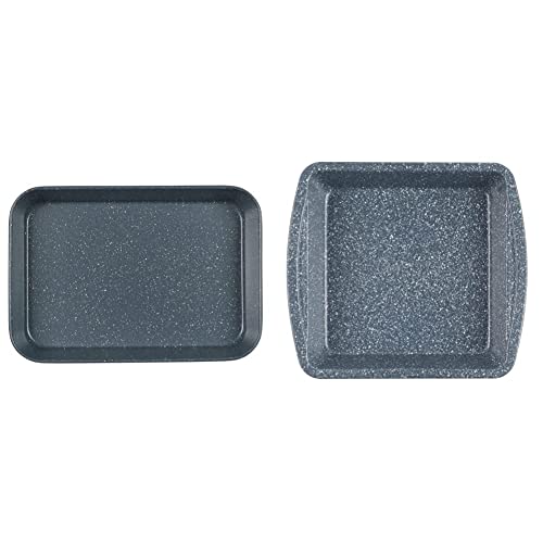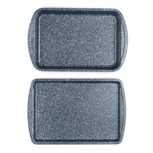 Russell Hobbs COMBO-5444 Square Baking Pan Roaster Tray Set of 2, Non-Stick, Carbon Steel Oven Tins, BPA/PFOA Free, For Brownies, Batch Cooking, Roasting, Nightfall Stone Collection, Blue Marble, 26cm